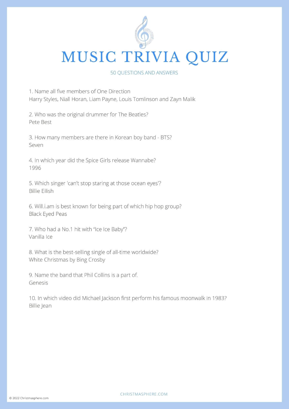 Whether you’re hosting a game night, planning a virtual hangout, or just looking for a fun way to pass the time, our printable music trivia questions are the perfect addition to any gathering. Simply print out the questions, grab some pens and paper, and get ready to put your music knowledge to the test!