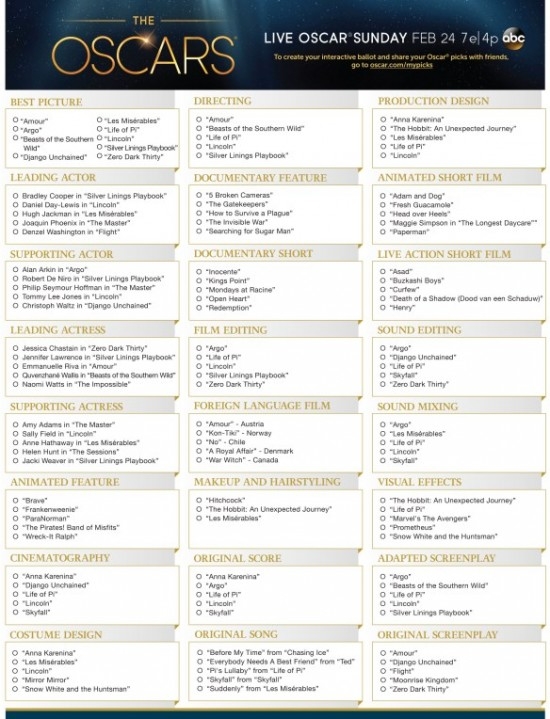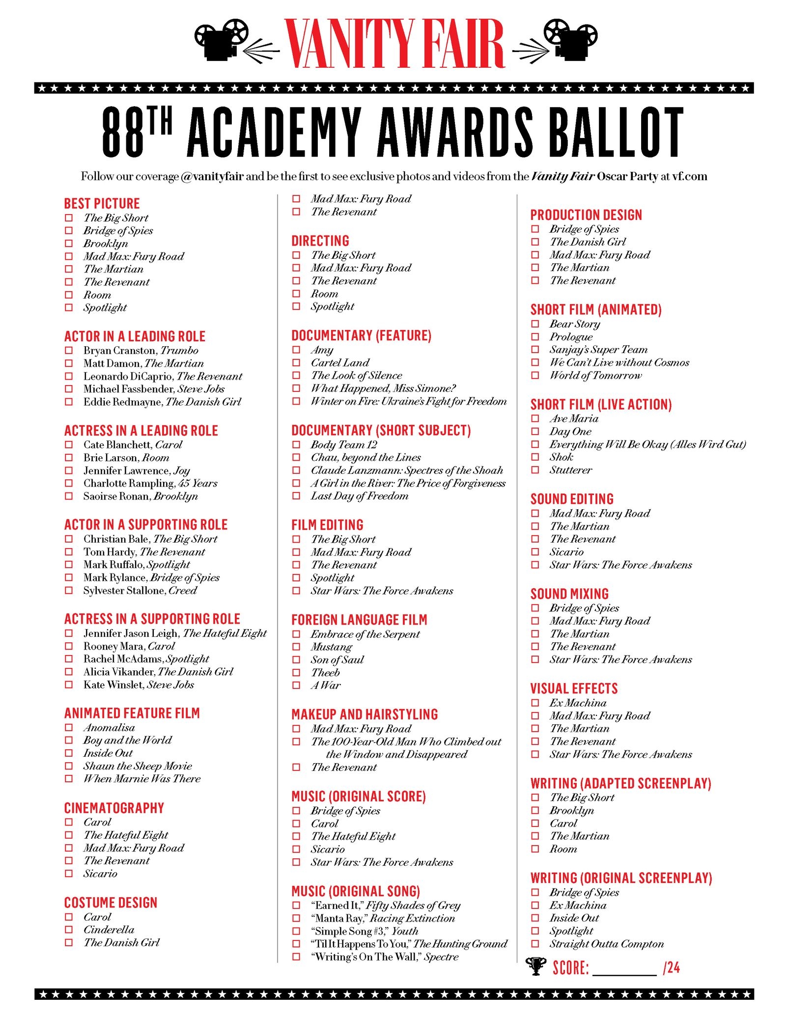 Free Printable Oscars Ballot 2025 Academy Awards Nominees Odds Cheat