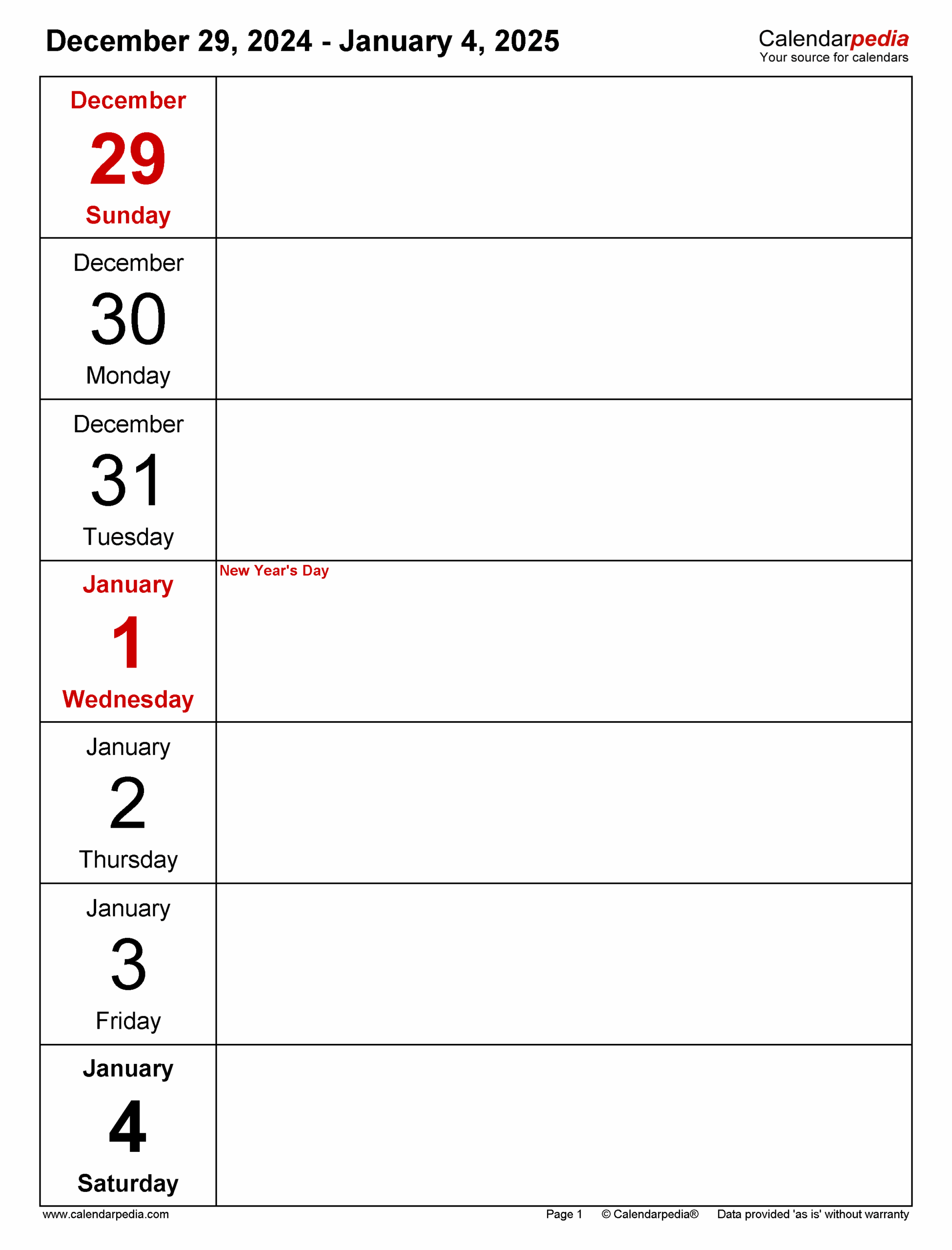2025 Weekly Calendar Template Taj Holtermann