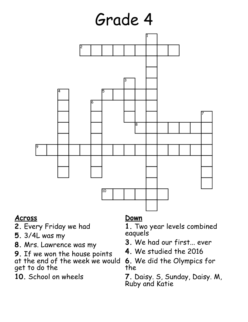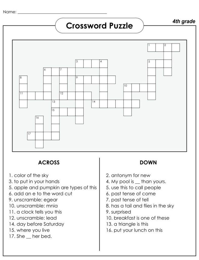 Printable Crossword Puzzles For 4th Graders Printable Templates