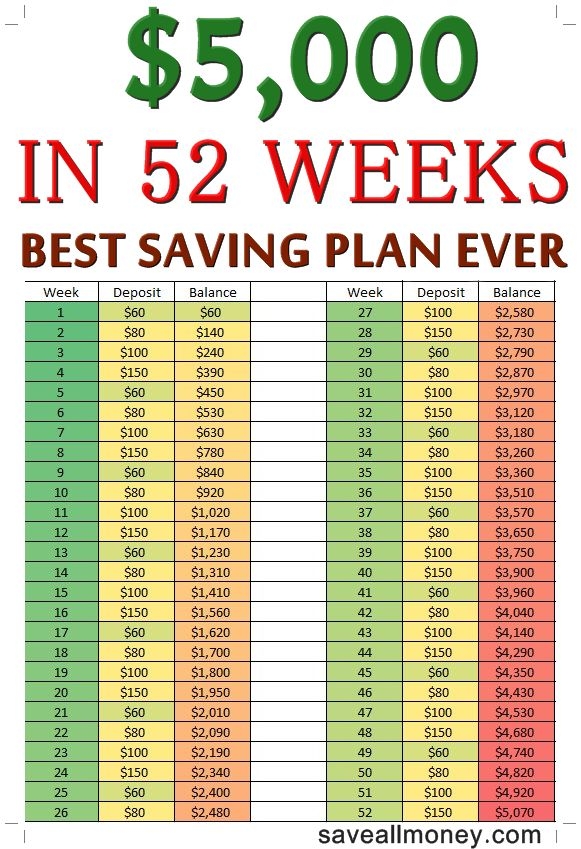 52 Week Money Challenge Save 5000 Free Printable Artofit