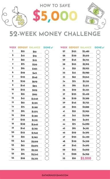 52 Week Money Challenge Free Printable To Help You Save 5000 Oh La De