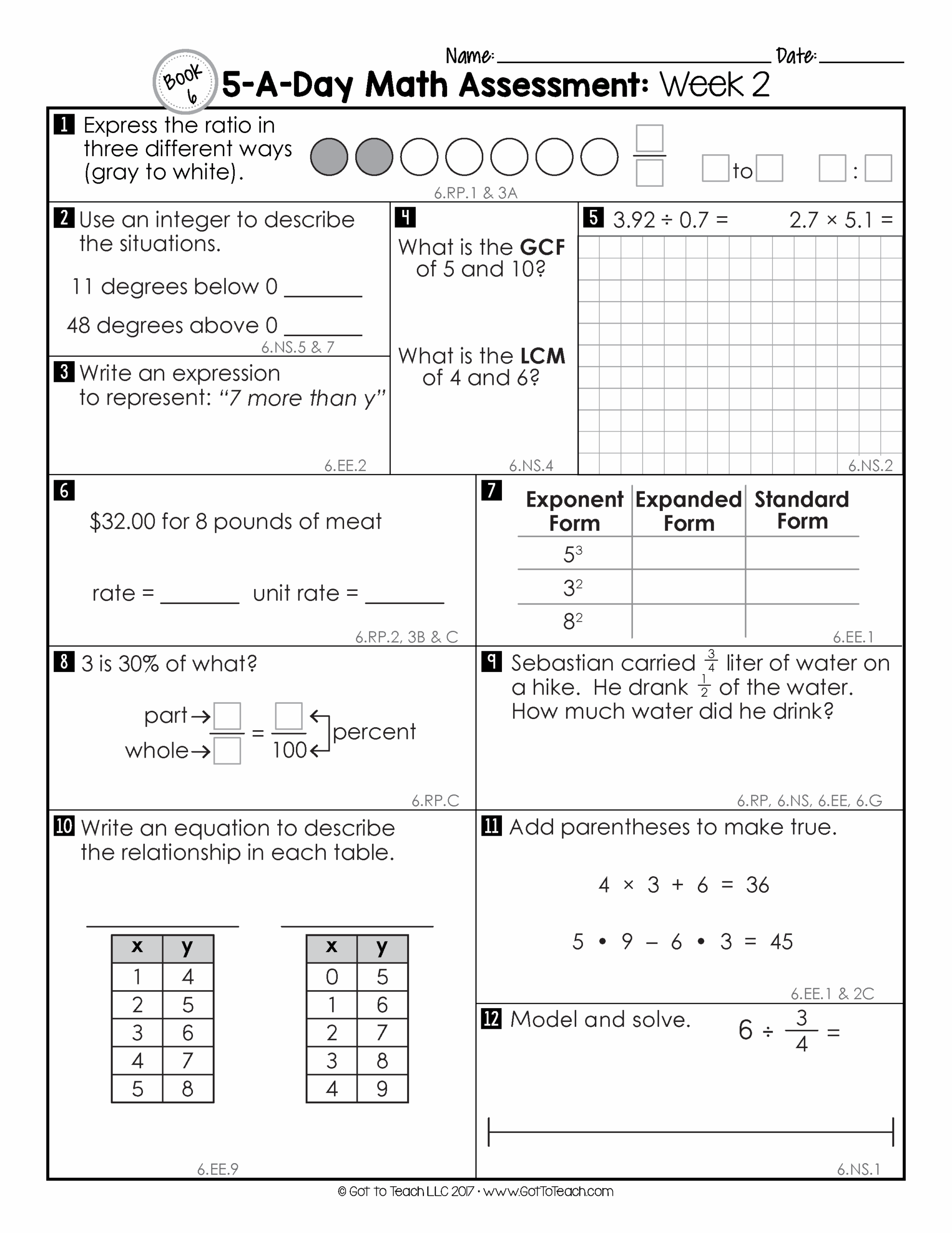 6th Grade Math Assessments Common Core Teaching Notes Print And