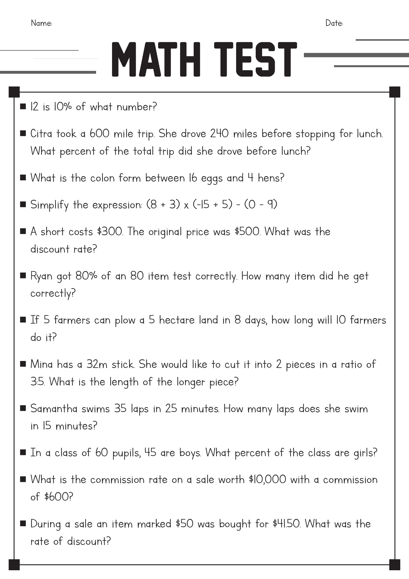 Whether your child needs extra practice on fractions, decimals, algebra, or geometry, this printable test is designed to assess their understanding of key math concepts. It’s a great way to gauge their strengths and identify areas where they may need additional help.