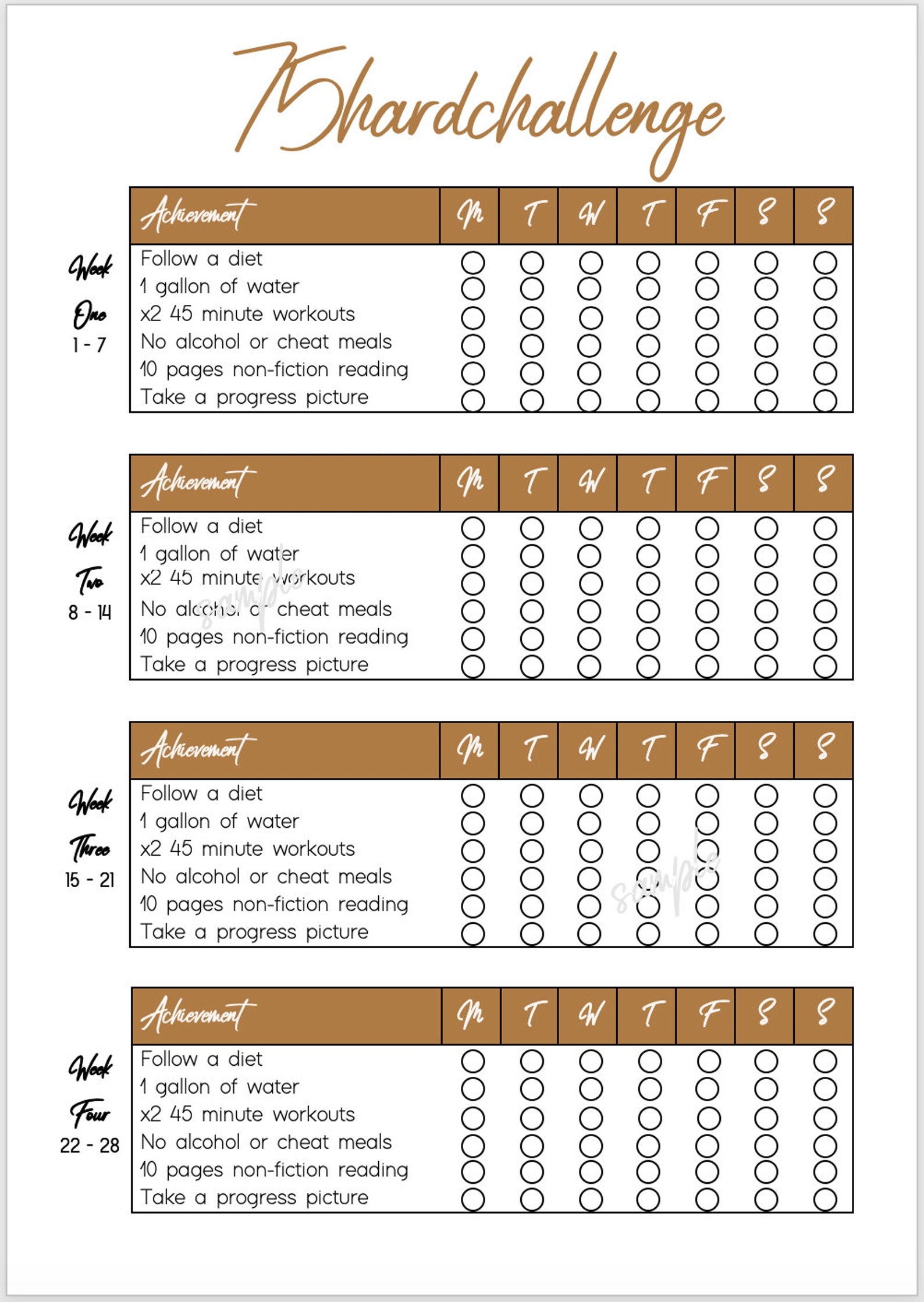 75 Hard Challenge Printable Printable Templates