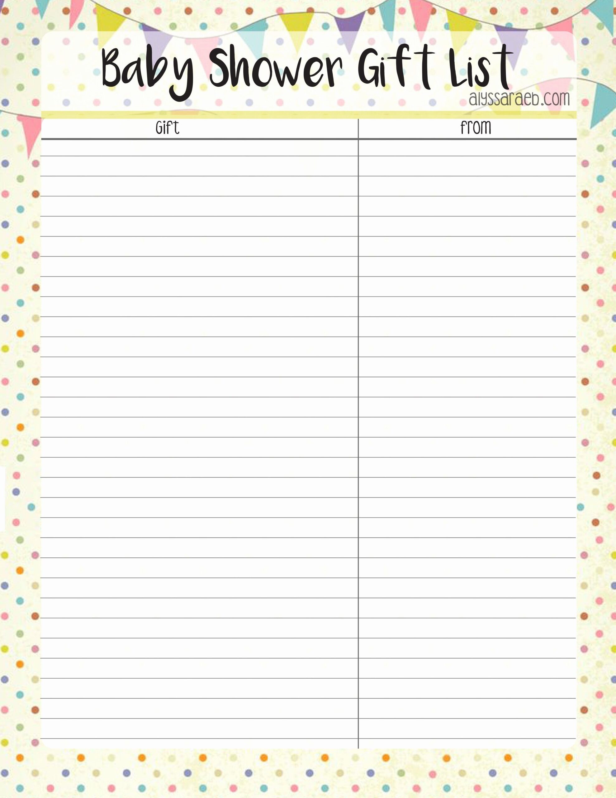 Free Printable Baby Shower Gift List Template Baby Shower Games