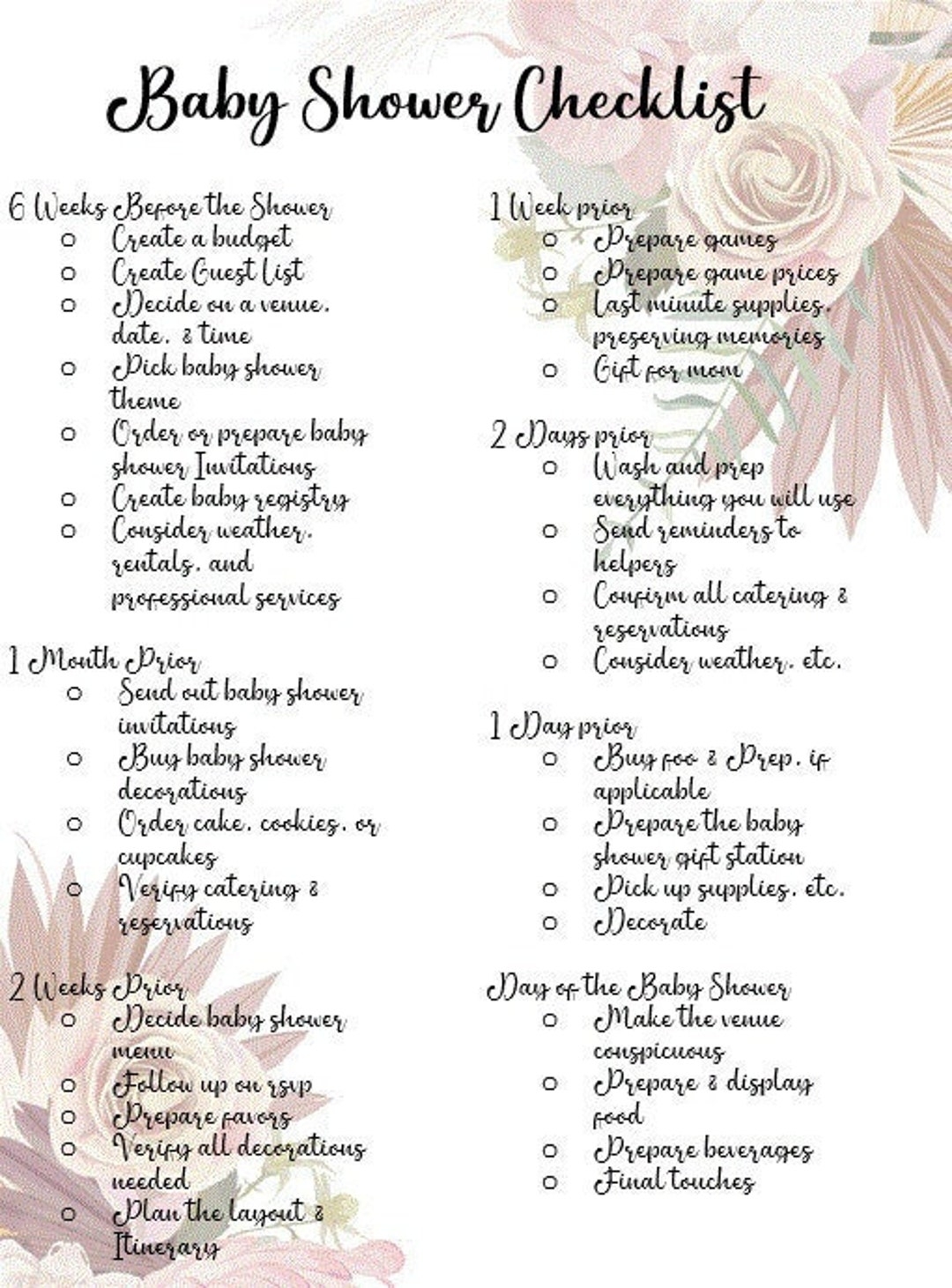 3PDF Printable Baby Shower Checklist Baby Shower Guest List Baby