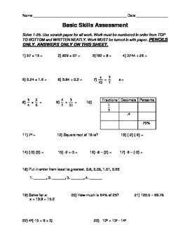 Basic Math Skills Assessment By Teacher Paraphernalia TpT