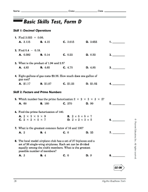 Basic Math Test With Answers Pdf Fill Online Printable Fillable
