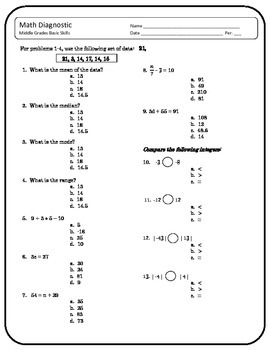Math Assessment Middle Grades Basic Skills By Shawna Making Math