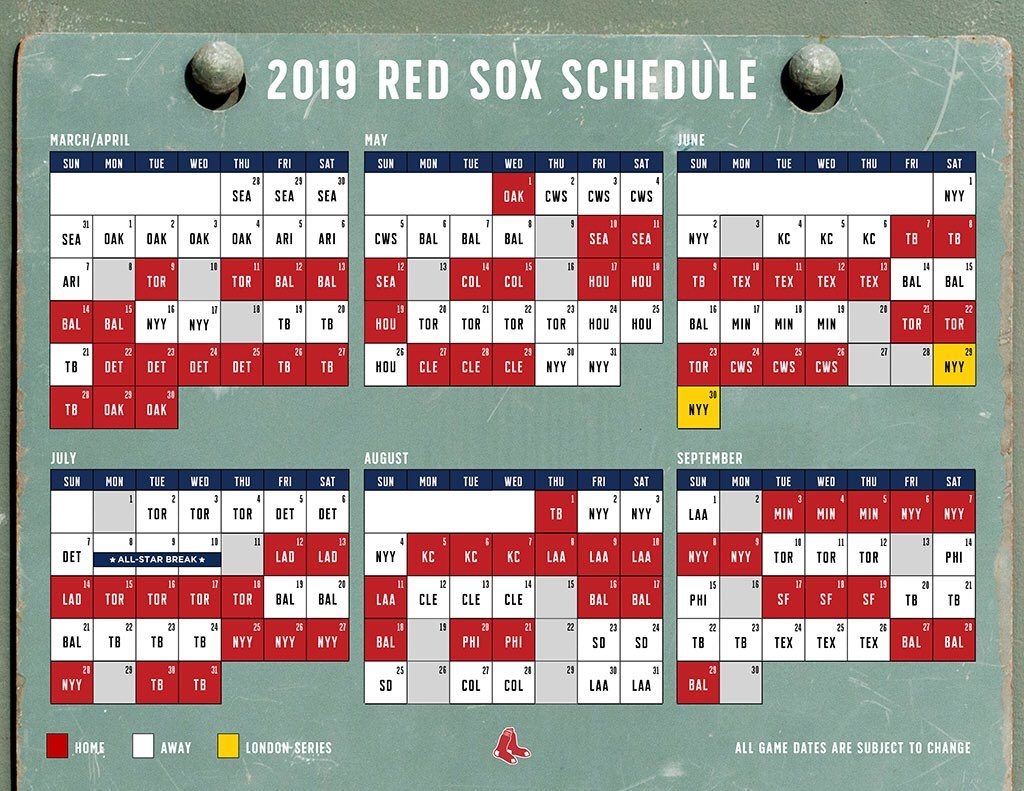 Printable Schedule Boston Red Sox