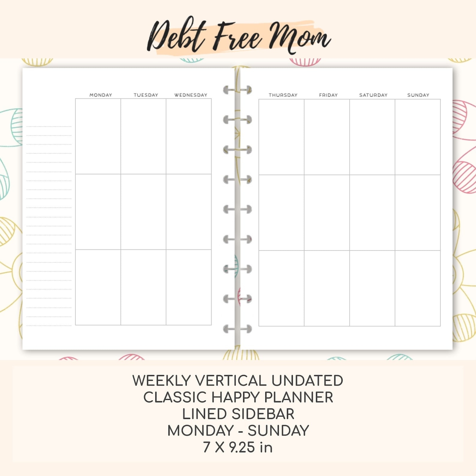 Classic Happy Planner Weekly Vertical Undated Printable Inserts Lined
