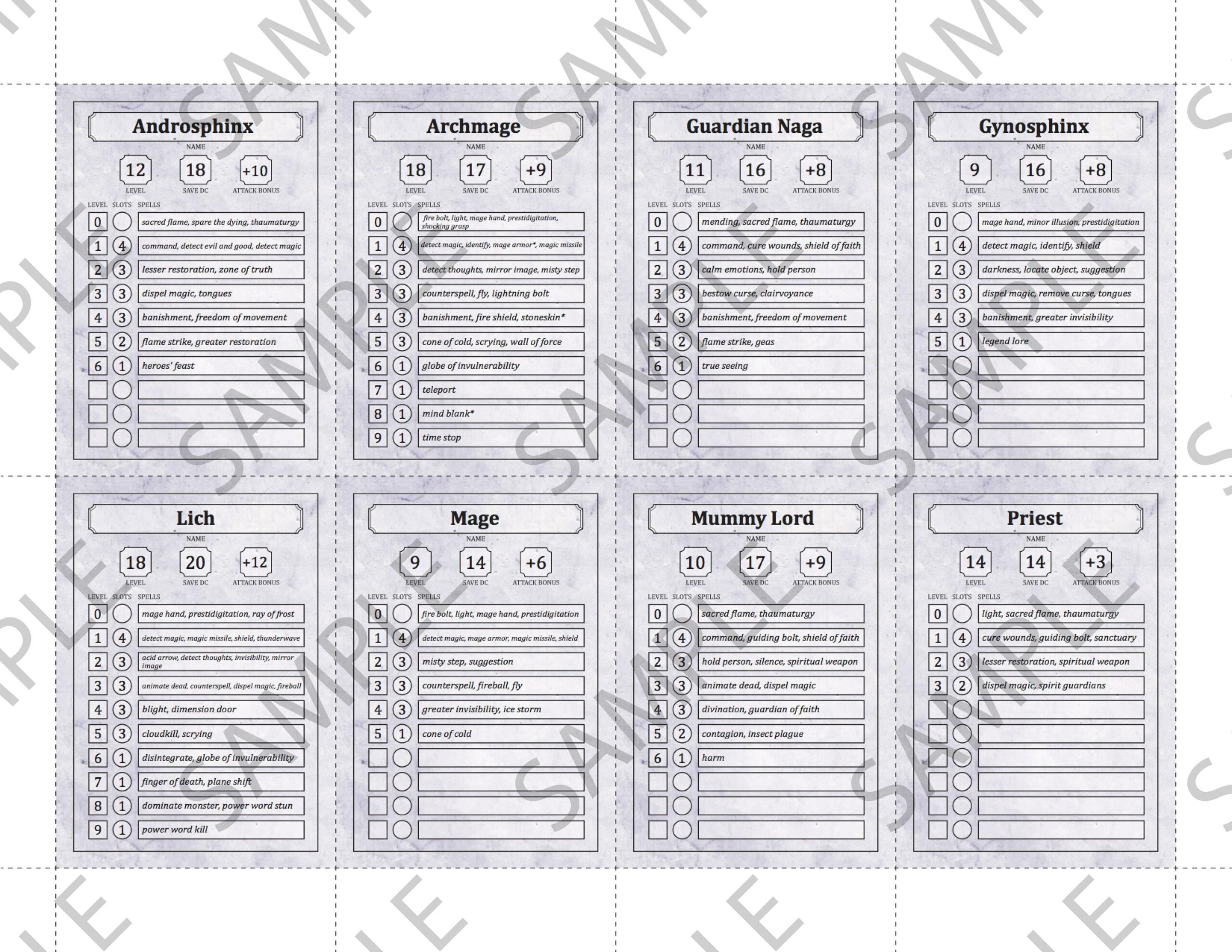 With these printable cards, you can have all the stats and information you need for each monster at your fingertips. No more flipping through the monster manual or keeping track of multiple tabs on your computer. Just print, cut, and play!