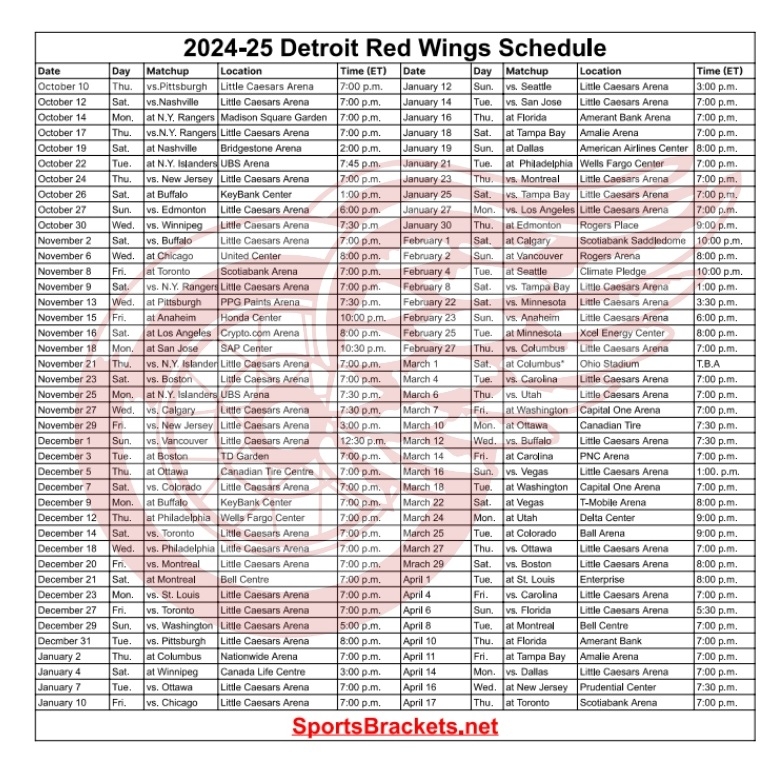 From home games at Little Caesars Arena to epic showdowns on the road, the Detroit Red Wings Schedule Printable has you covered. No more scrolling through websites or flipping through apps – just grab your printed schedule and get ready to root for the Wings.