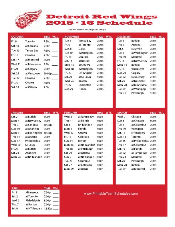Printable Detroit Red Wings Schedule Printable Calendars AT A GLANCE