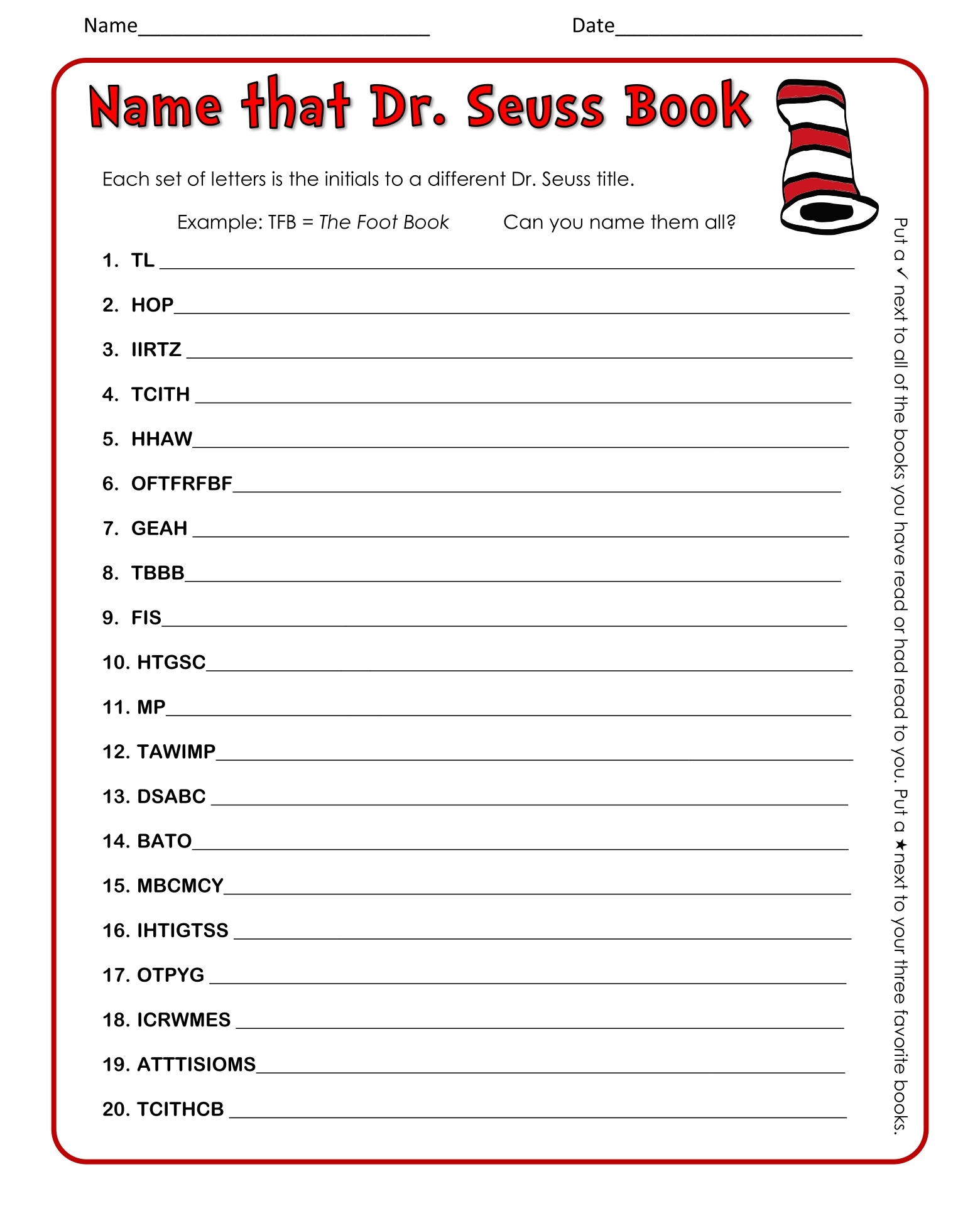 Free Dr Seuss Worksheets And Printables For Kids Dr Seuss