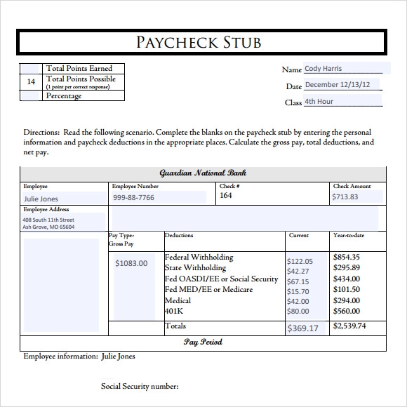 Blank Paycheck Stubs 10 Free PDF Printables Printablee