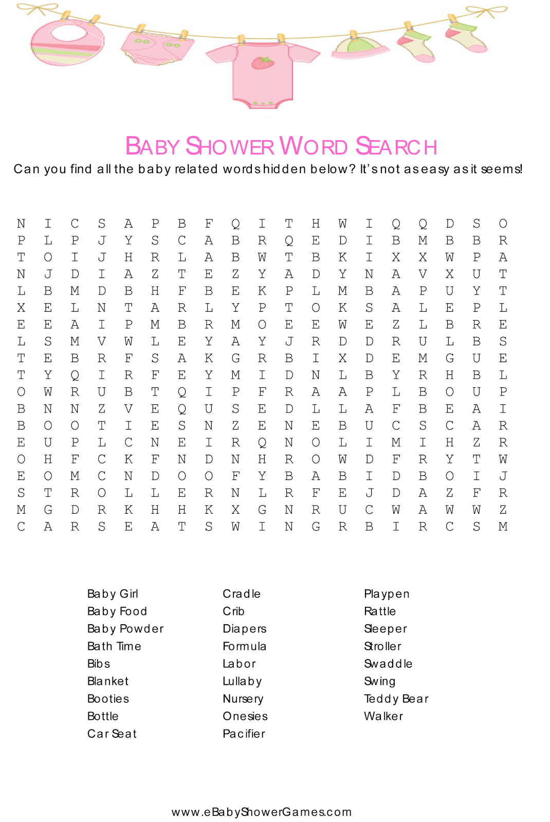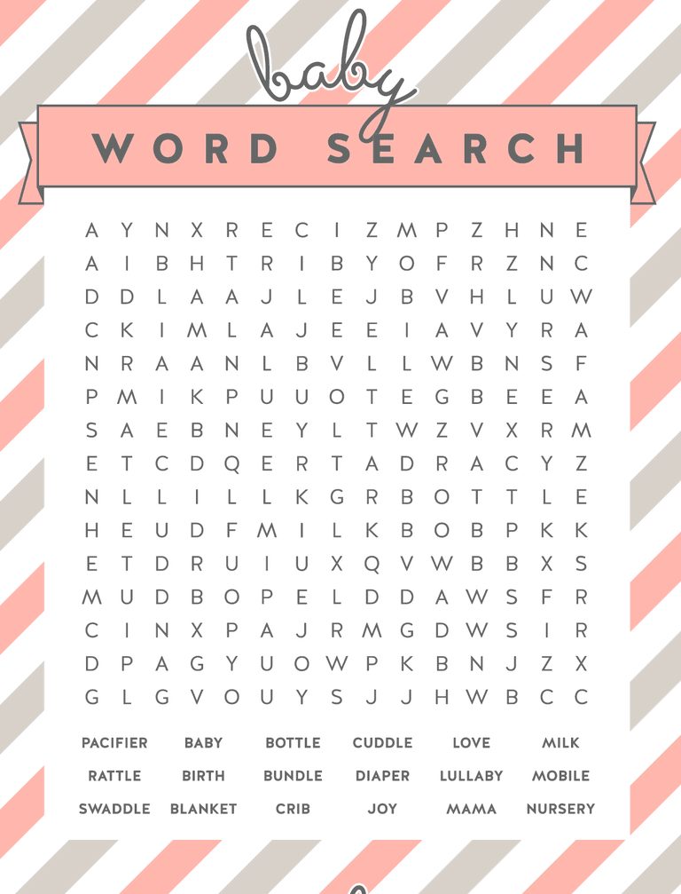 17 Free Printable Baby Shower Word Search Puzzles