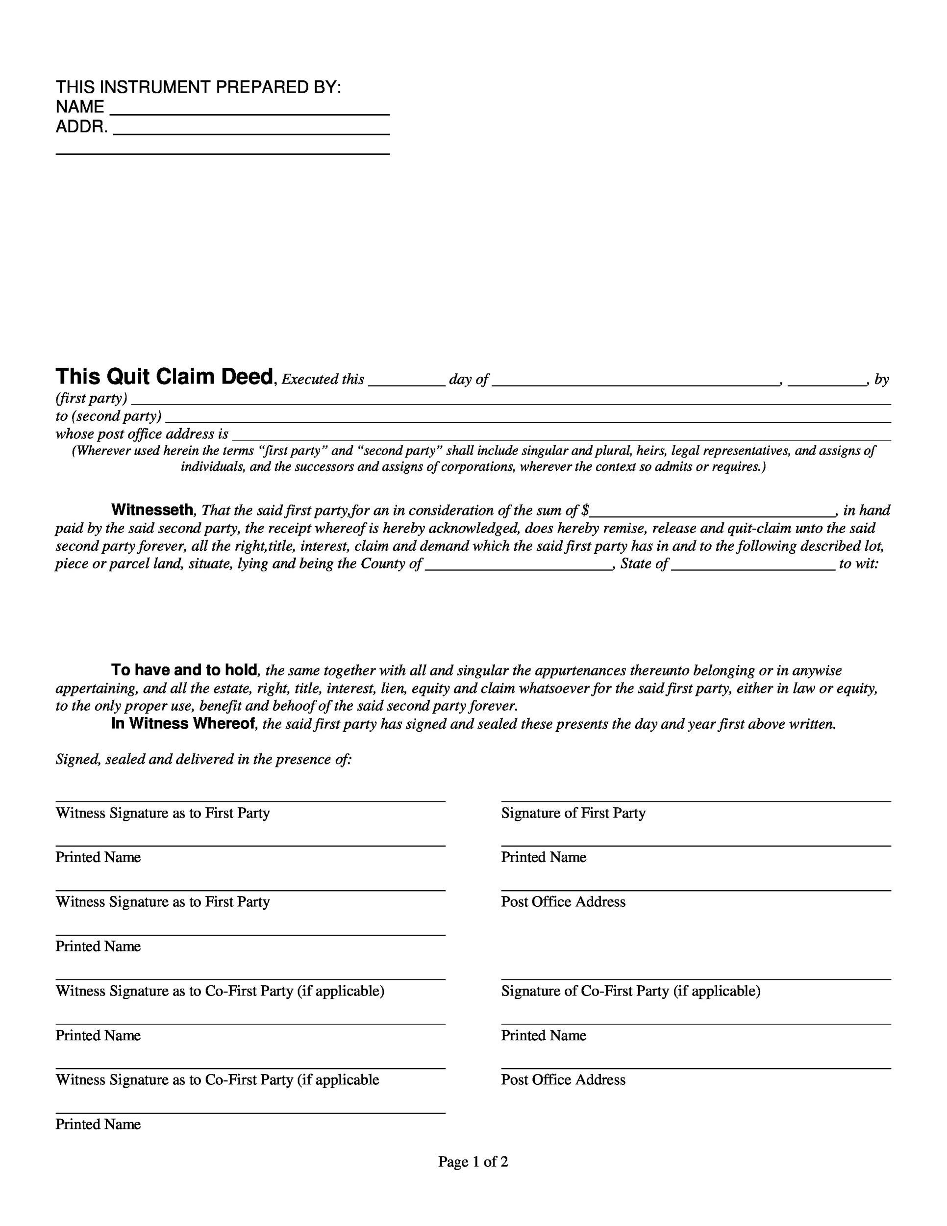If you’re looking for a free printable blank quit claim deed form, you’re in the right place! Quit claim deeds are legal documents used to transfer ownership of real estate from one party to another.