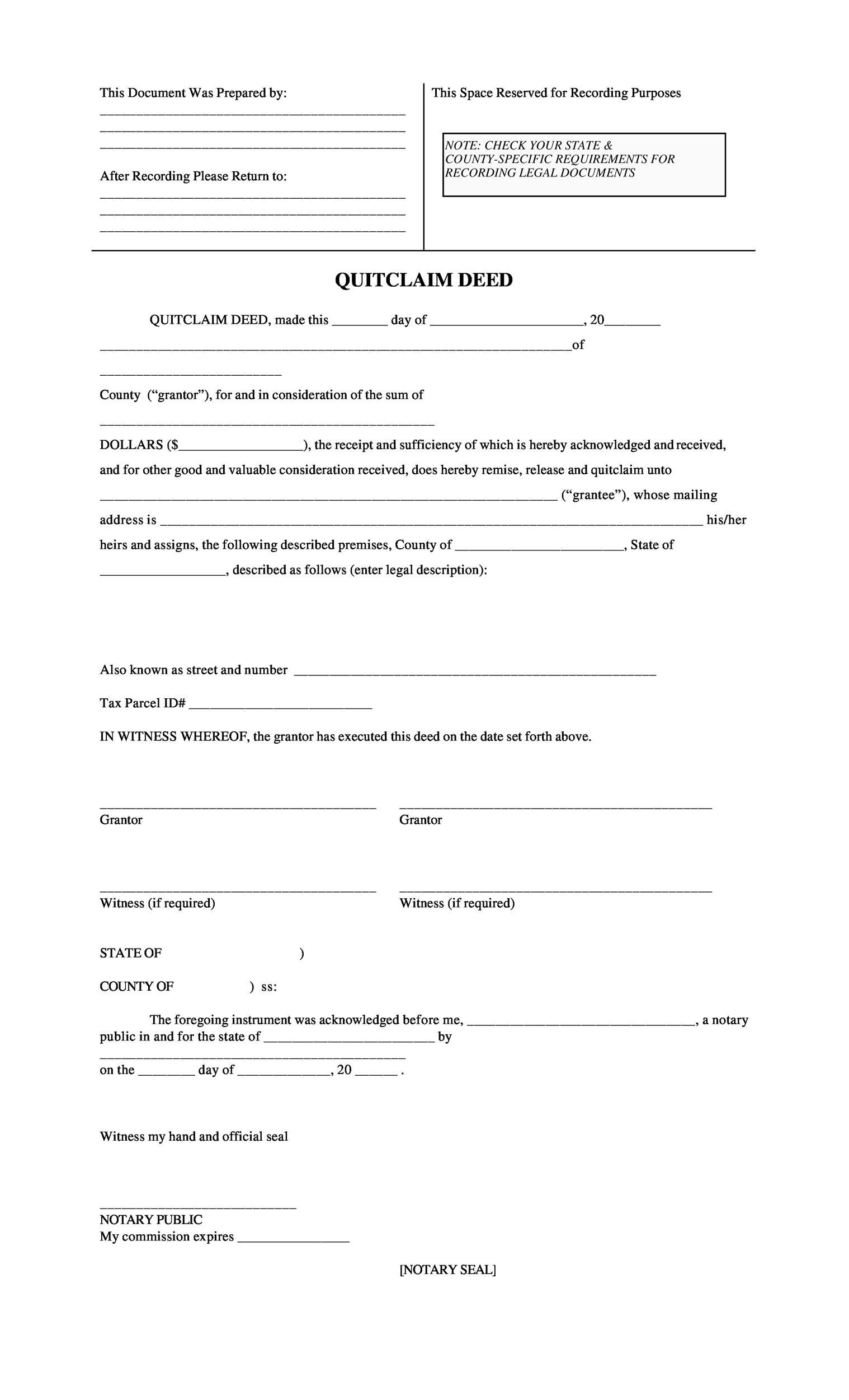 46 Free Quit Claim Deed Forms Templates TemplateLab