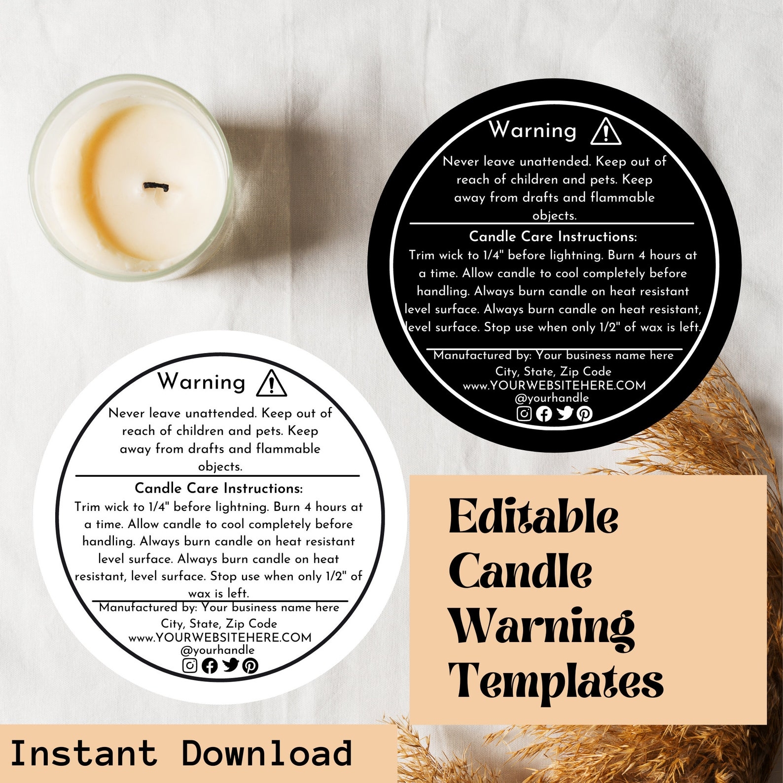 Creating custom warning labels for your candles is essential to provide important safety information to your customers. By using our free printable templates, you can add a personal touch to your products while ensuring they comply with safety regulations.
