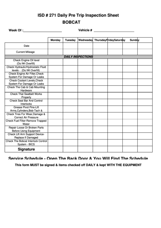 Free Printable Dot Pre Trip Inspection Form Printable Templates Your