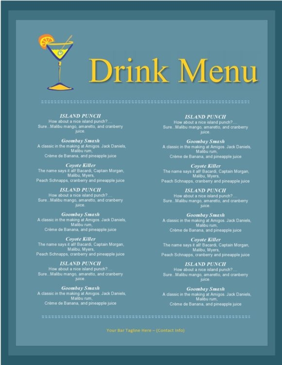 6 Free Drink Menu Templates Editable Word
