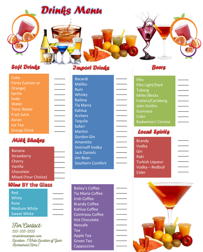 Free Printable Drink Menu Template