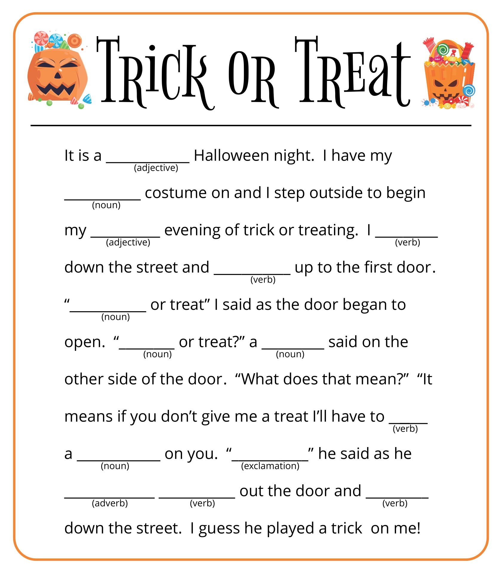 Halloween Mad Lib 15 Free PDF Printables Printablee