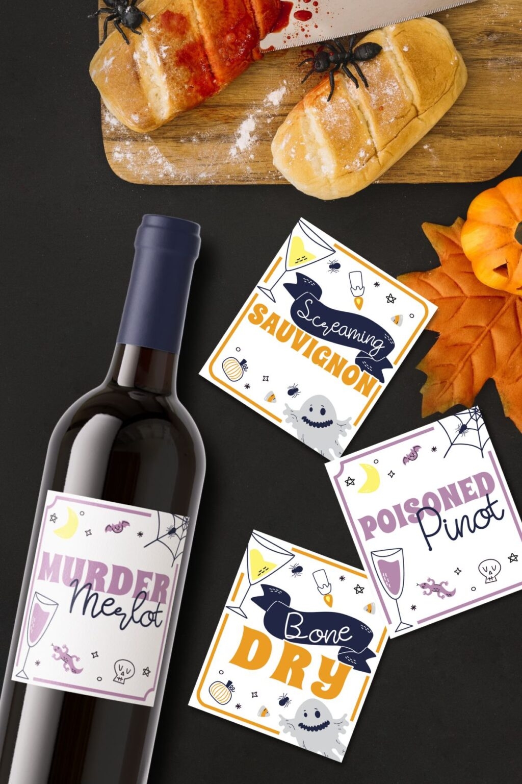 Printing and applying these labels is a breeze. All you need is some sticker paper or regular paper and adhesive to attach them to your wine bottles. In just a few minutes, you’ll have transformed your bottles into spooky works of art.