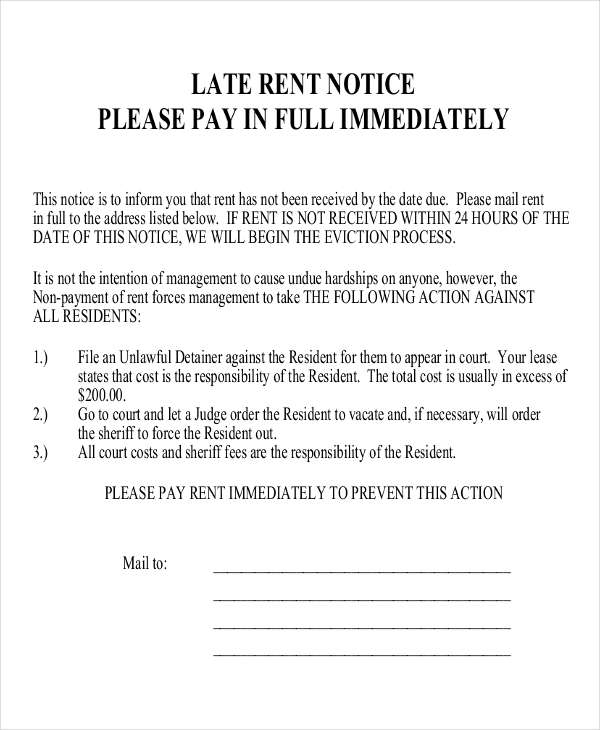 Free Printable Late Rent Notice Templates Word PDF 30 Day Eviction