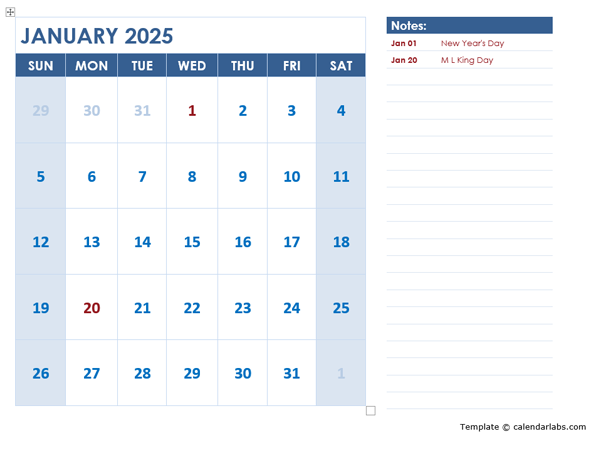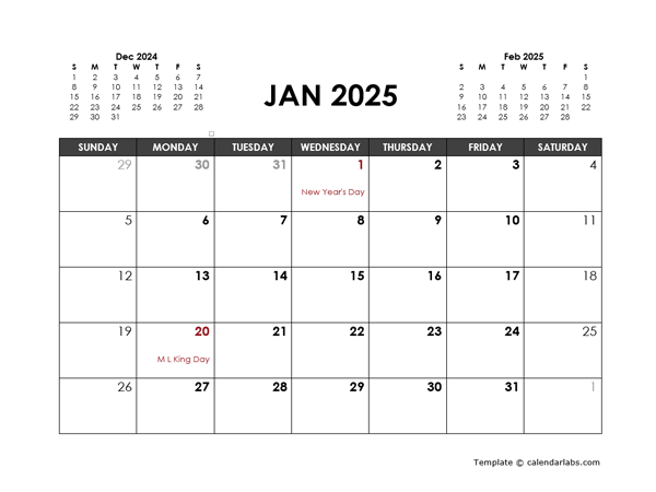 2025 Monthly Calendar Template Landscape Free Printable Templates