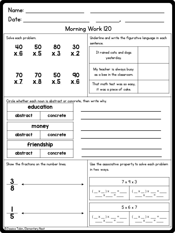 Free Printable Morning Work For 3Rd Grade