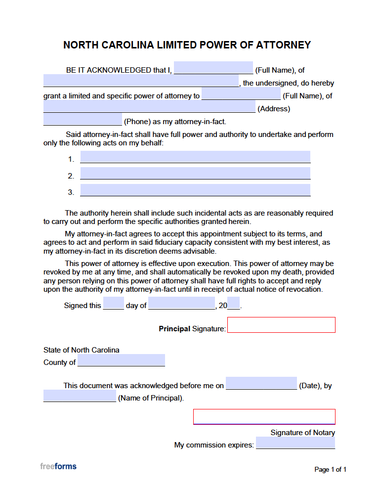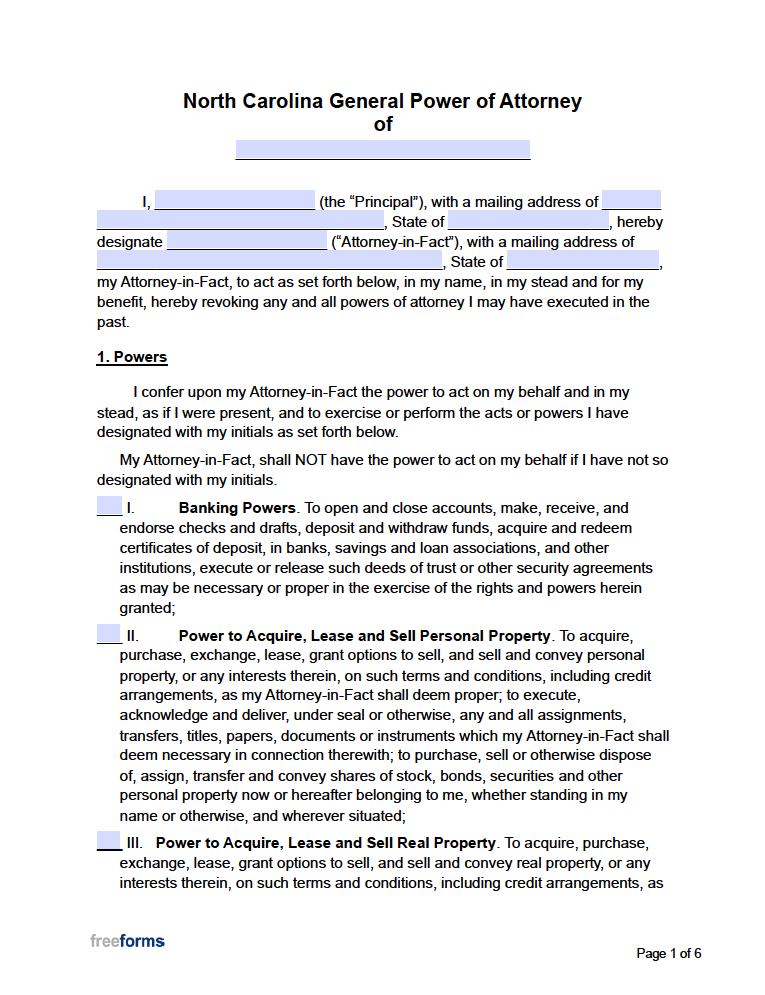 Free North Carolina NC Power Of Attorney Forms PDF Word