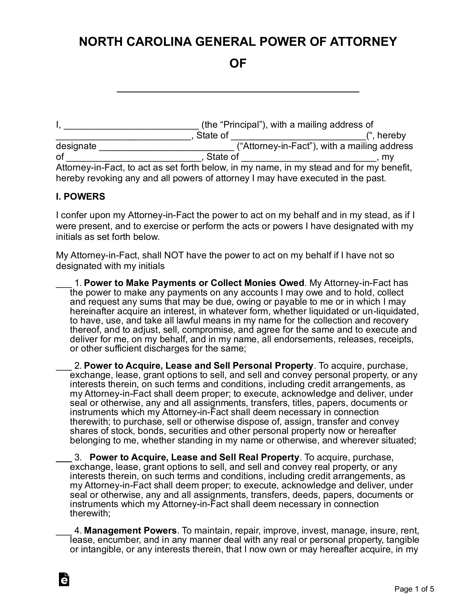 Free North Carolina Power Of Attorney Forms PDF Templates