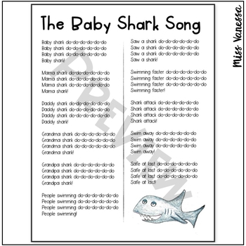 The Baby Shark Song Printable Lyrics By Miss Vanessa TpT