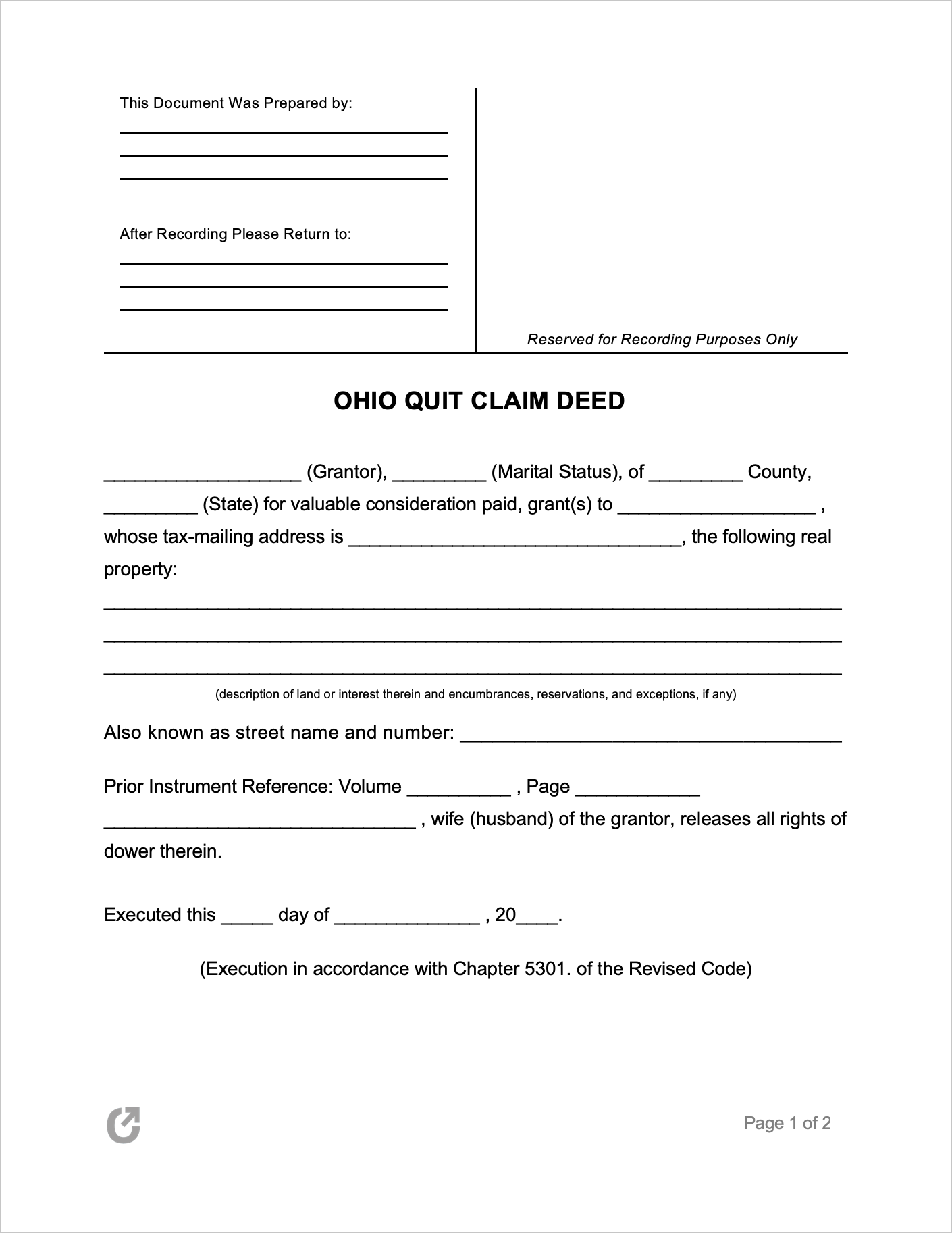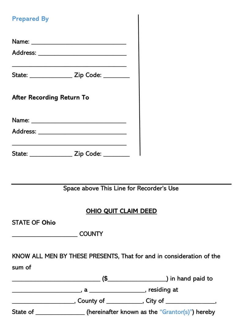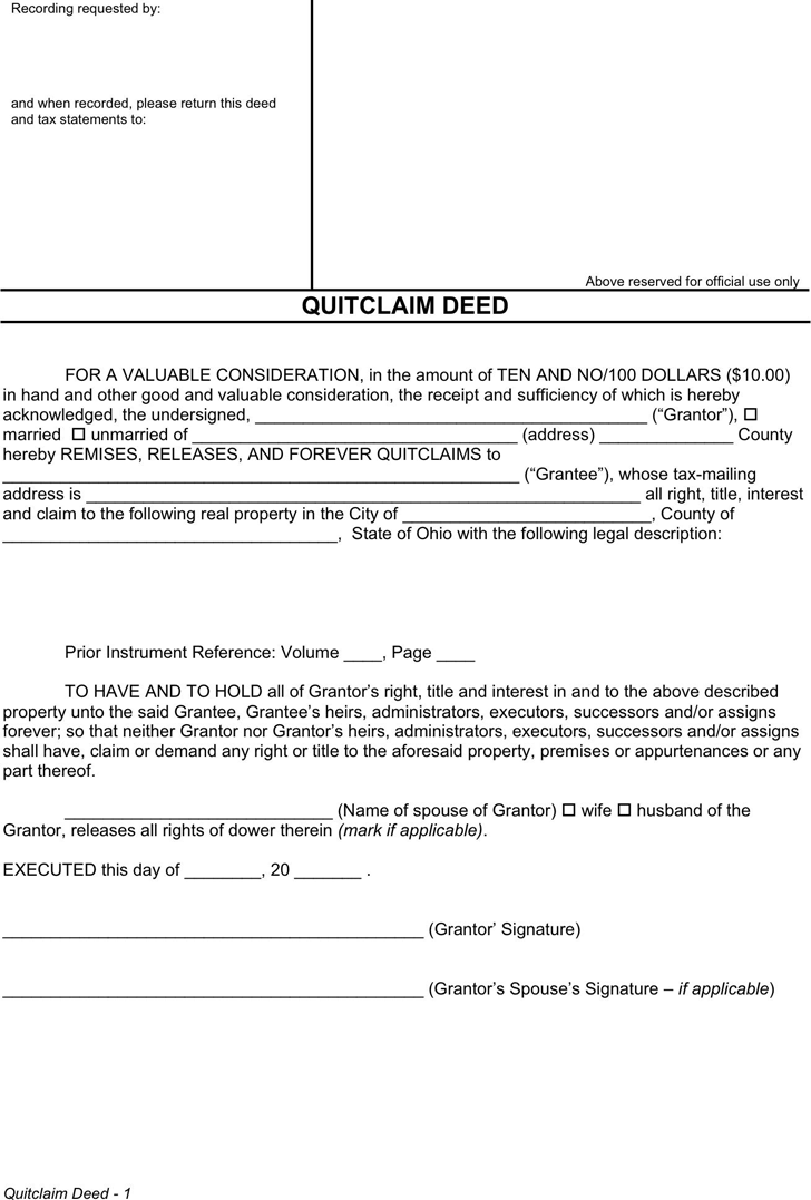 Free Printable Quit Claim Deed Form Ohio Printable Forms Free Online
