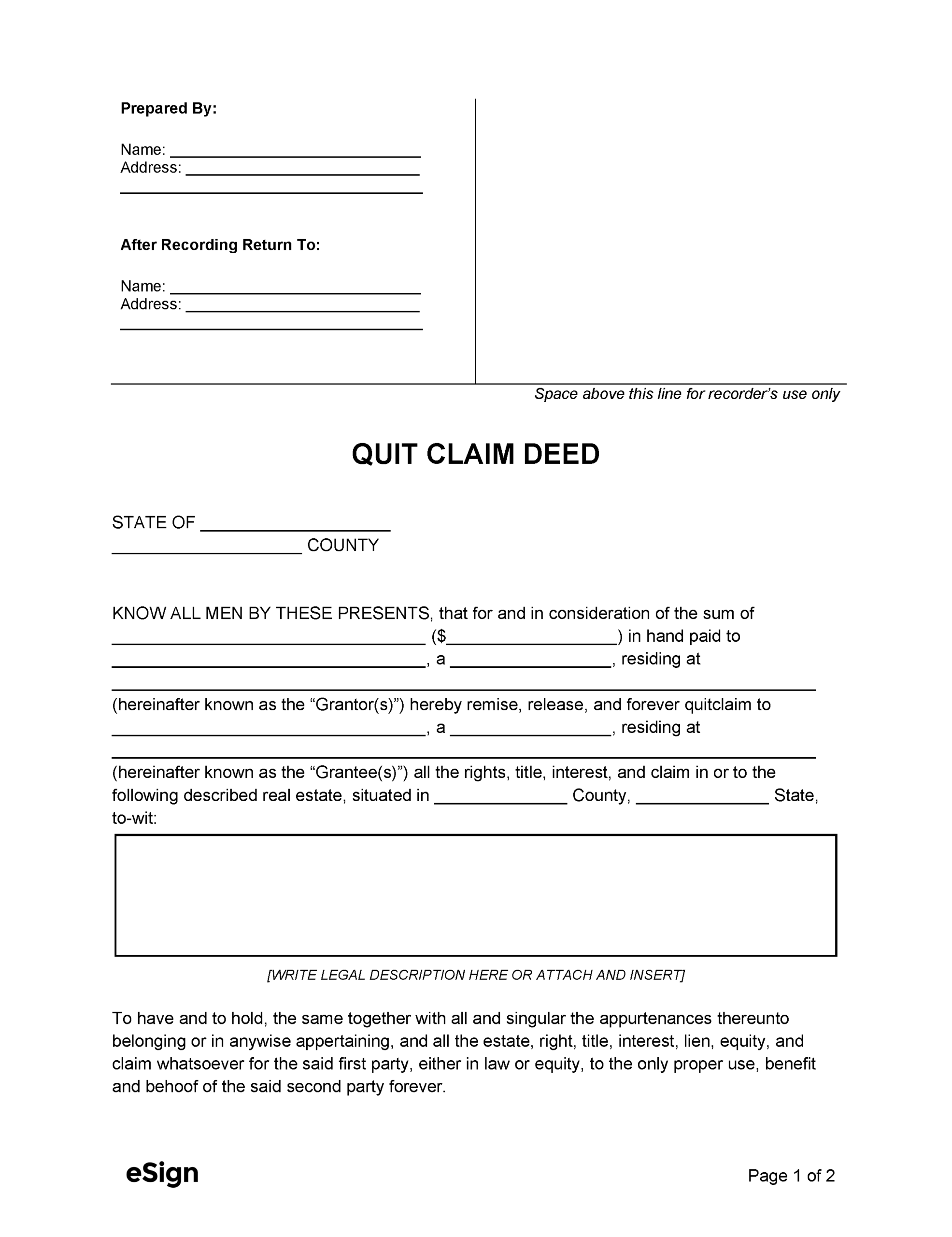 Using a free printable form can save you time and money compared to hiring a lawyer to draft a Quit Claim Deed for you. However, it’s crucial to carefully read and understand the document before signing to avoid any legal issues down the road.