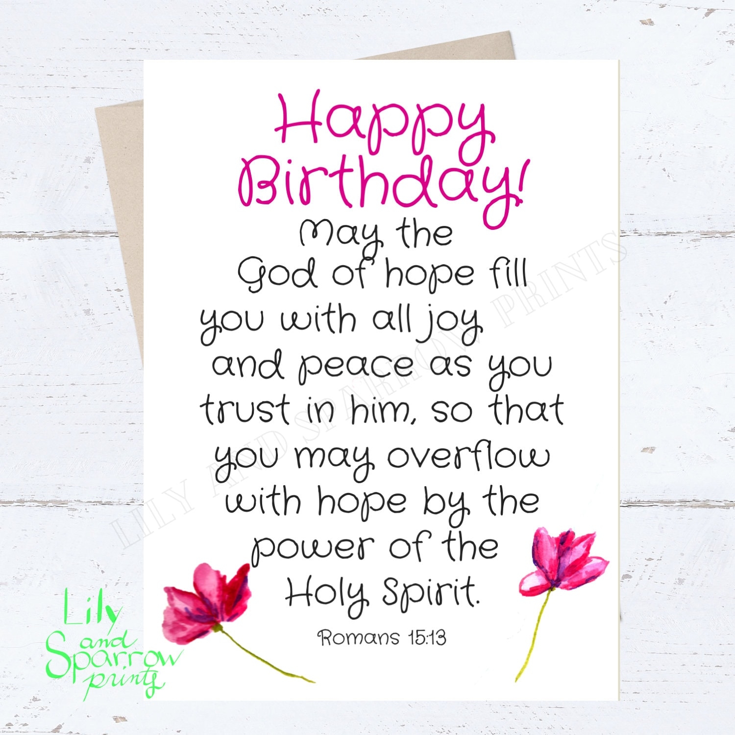 Religious PRINTABLE Birthday Card Romans Bible Verse Card Birthday