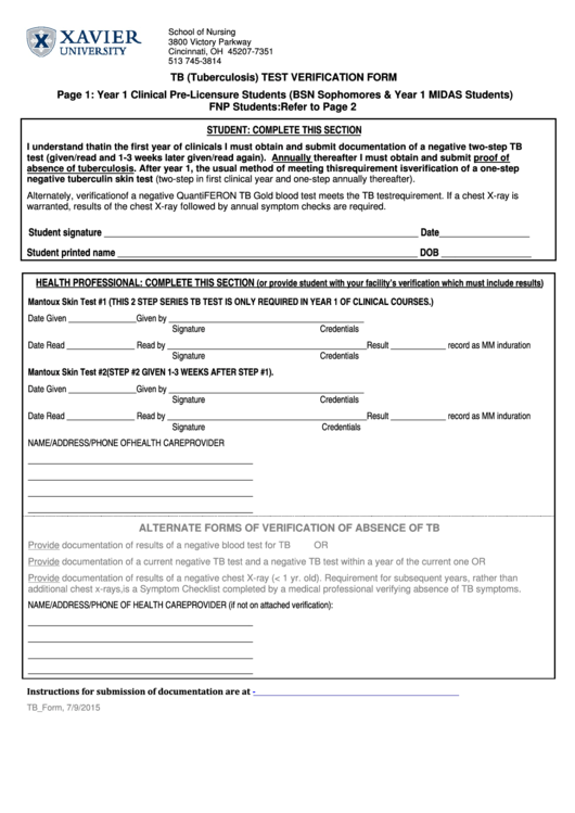 Free Printable Tb Test Form