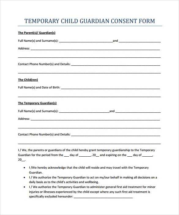 Free Printable Temporary Guardianship Forms