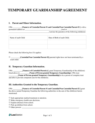 Printable Temporary Guardianship Form Free PDF Word LawDistrict