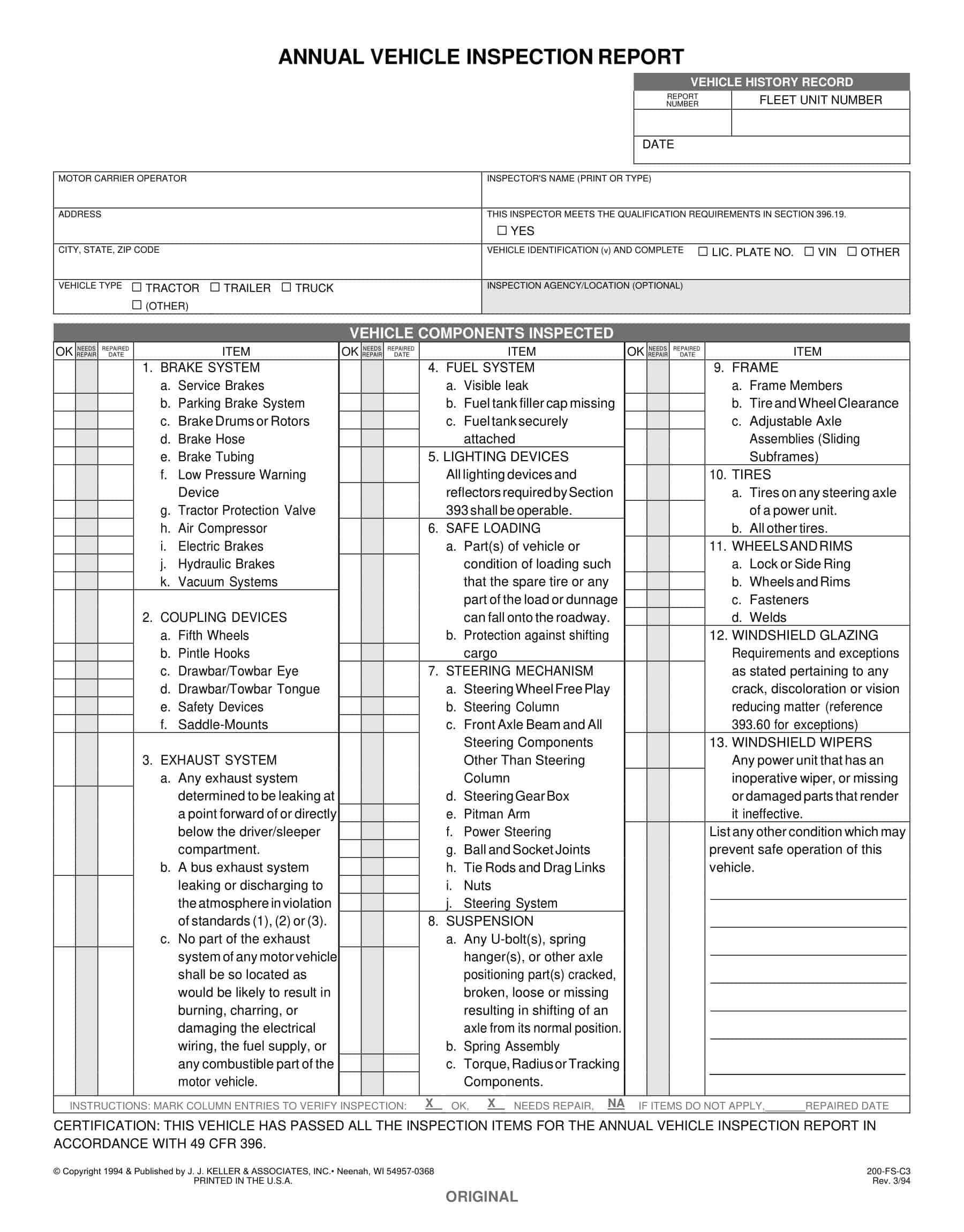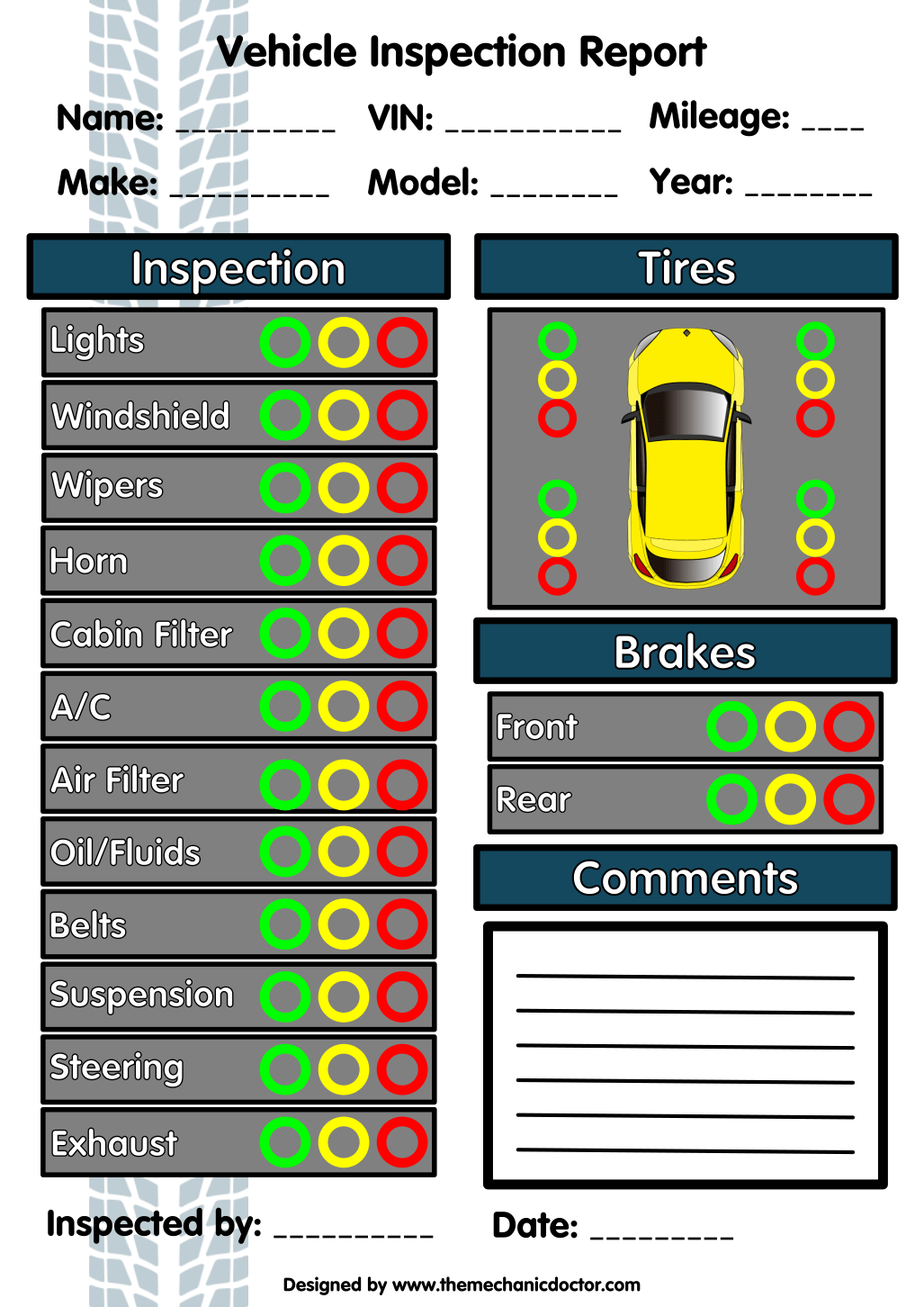 Free Printable Vehicle Inspection Form Free Printable