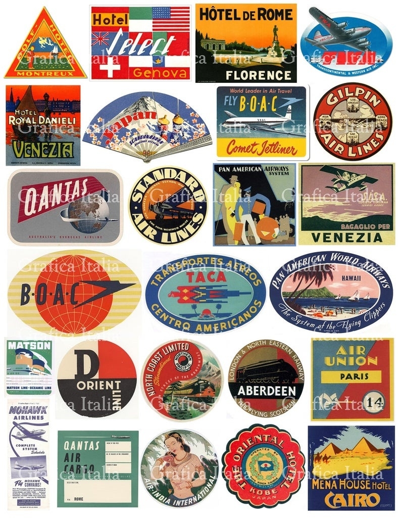 25 Travel Luggage Stickers Retro Digital Printable Collage Etsy