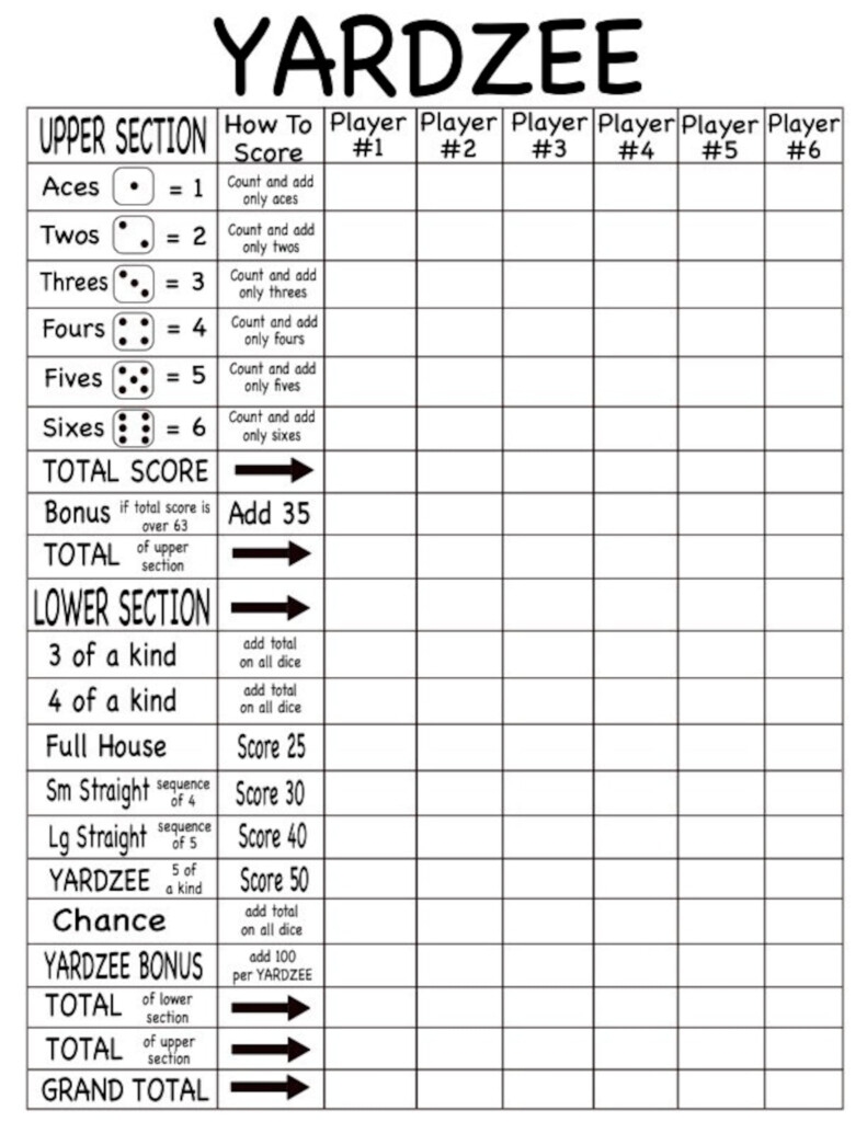 Downloadable Free Printable Yardzee Score Card Pdf Printable Templates