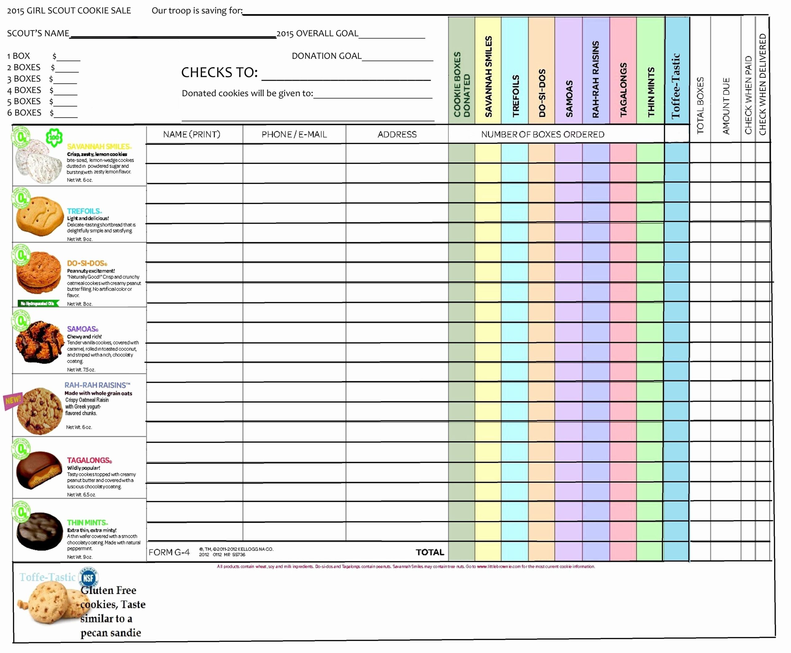Printable Girl Scout Cookie Form Printable Forms Free Online