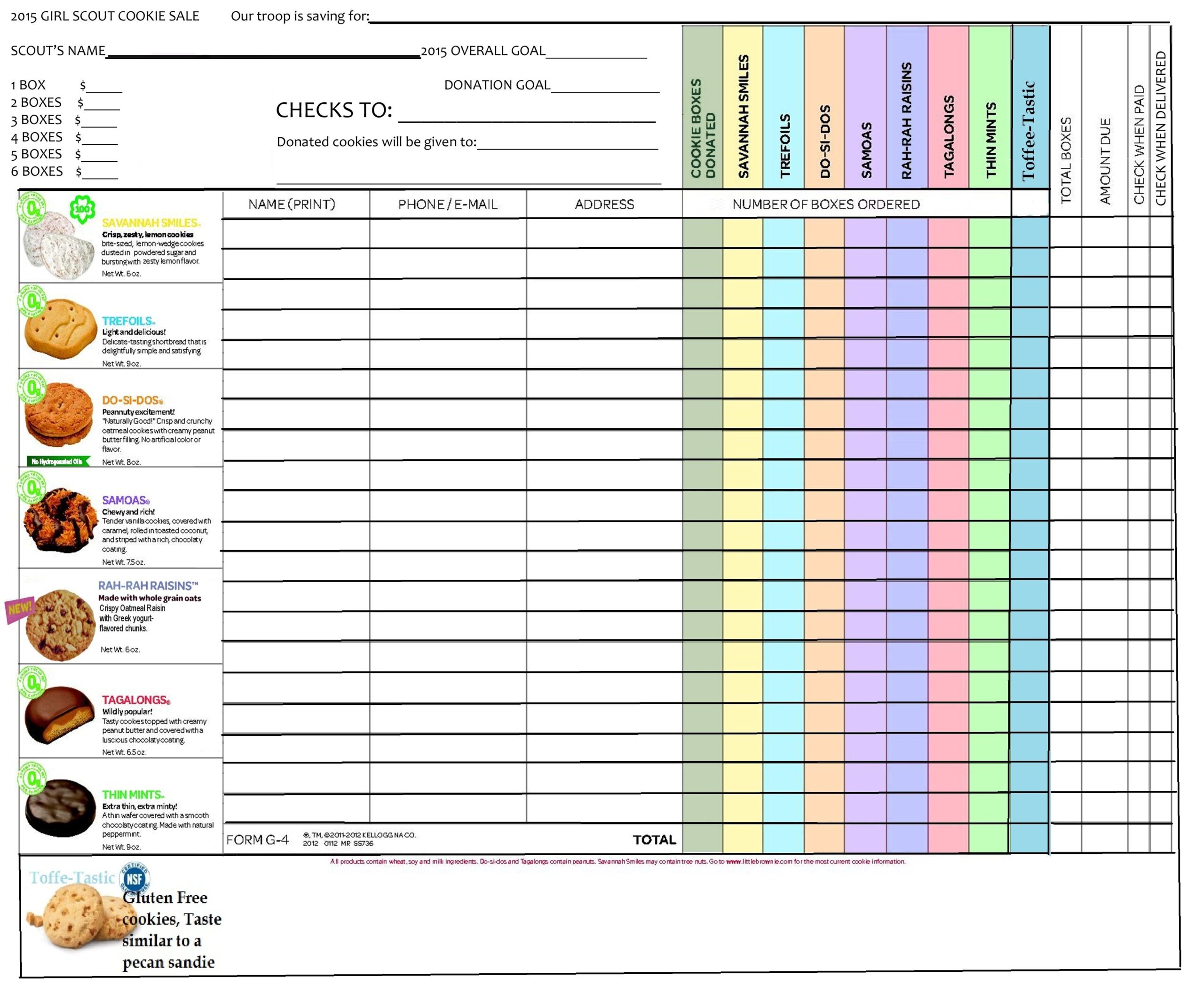 Girl Scouts Cookie Form Printable Printable Forms Free Online