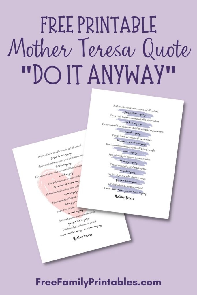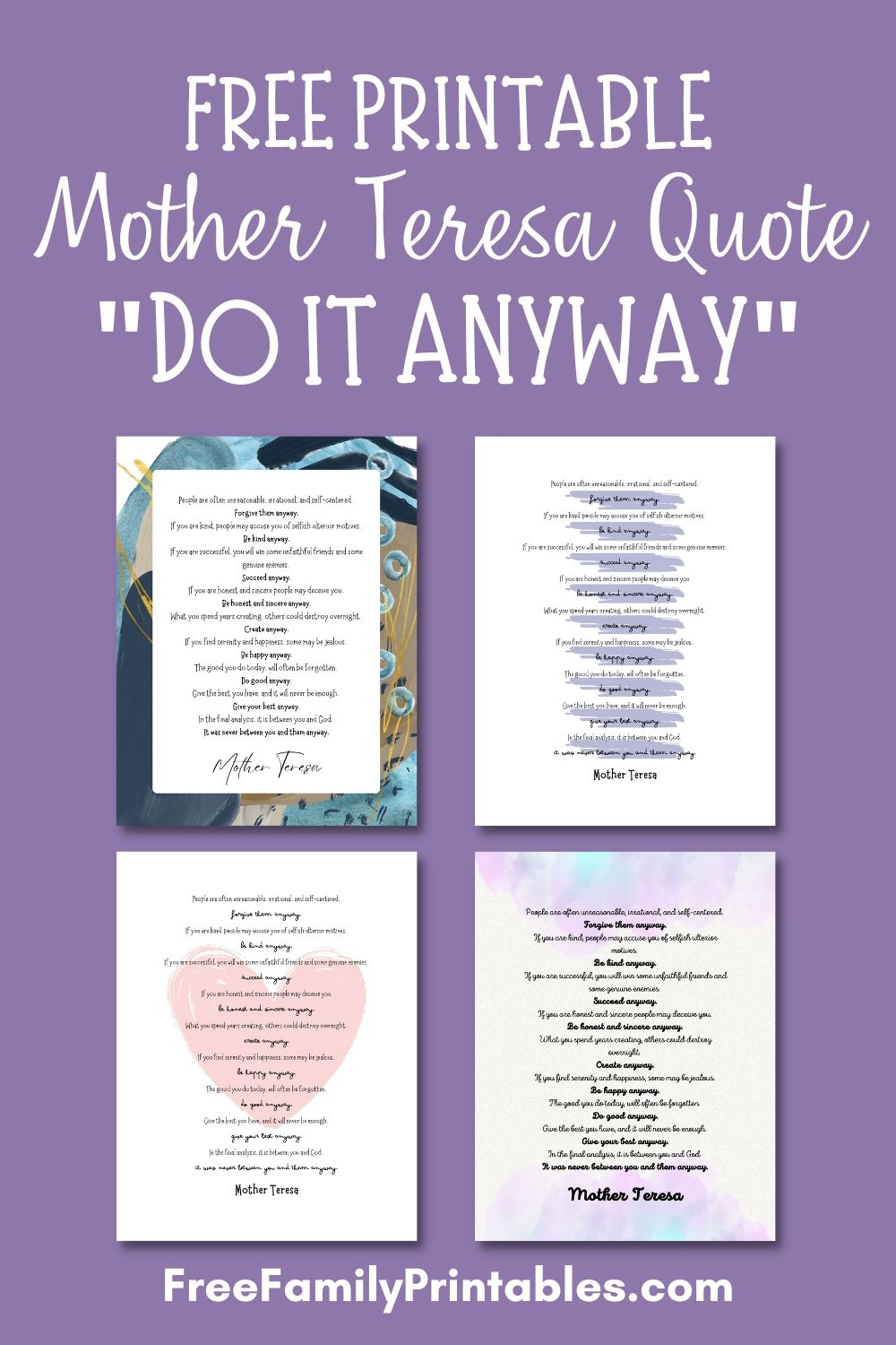Free Mother Teresa Do It Anyway Printable Making Frugal FUN
