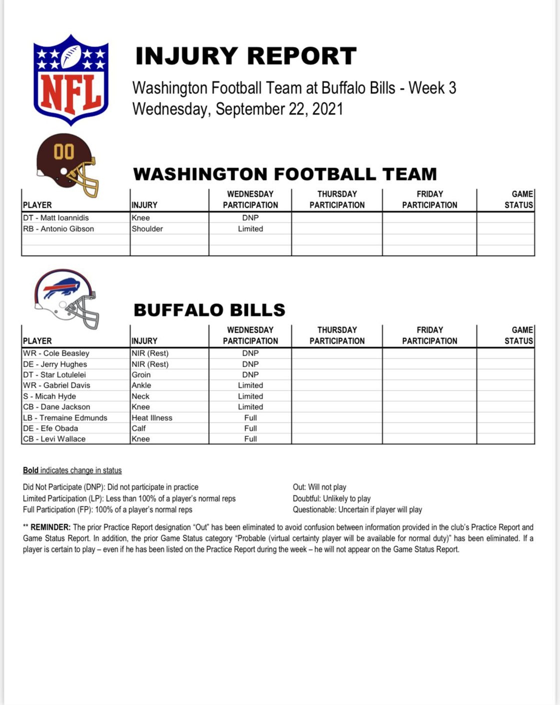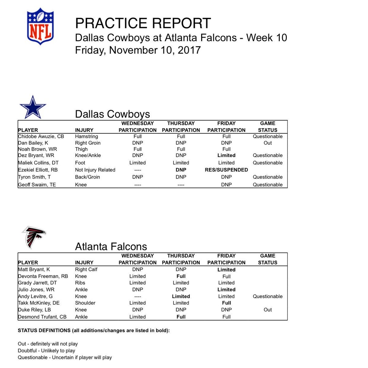 Printable Nfl Injury Report