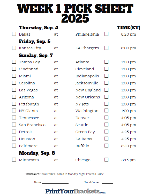 Nfl Week 2 Pick Sheet 2025 Kai M Belt